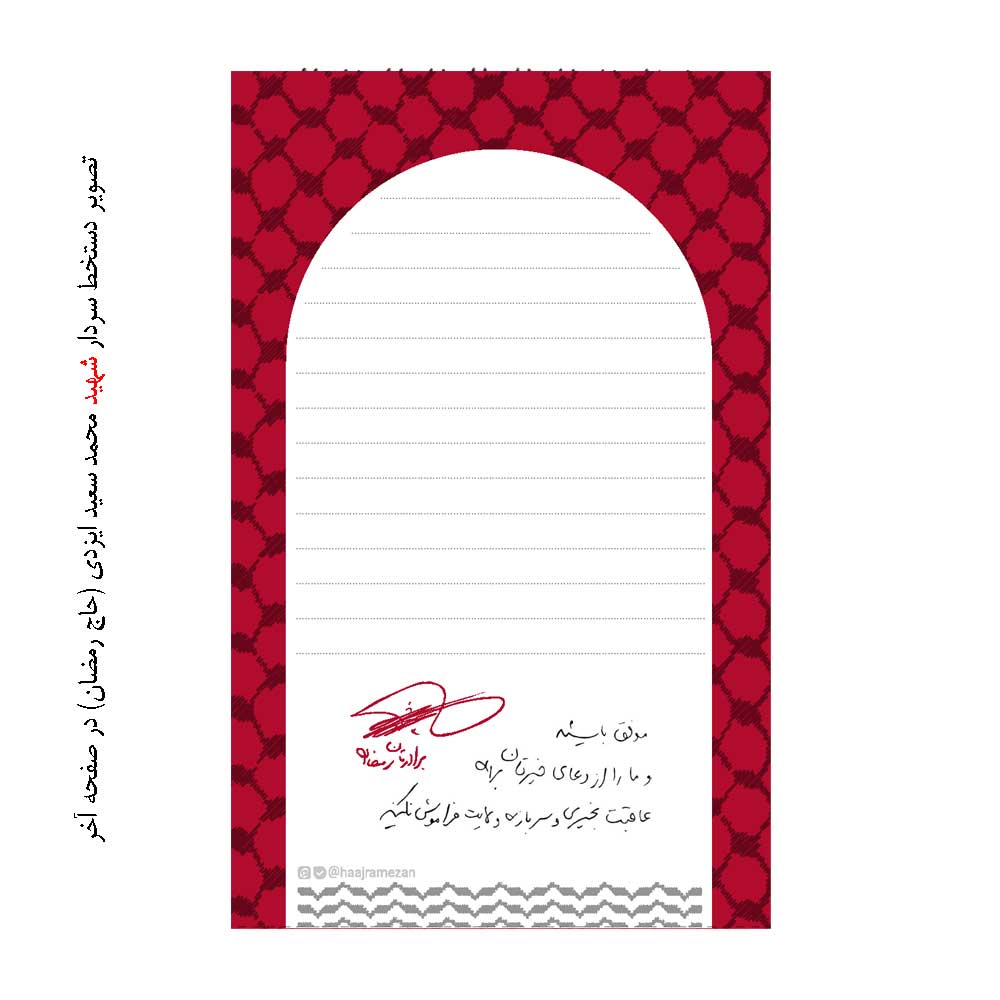 دفتر یادداشت طرح شهید حاج رمضان 60 برگ سیمی از بالا